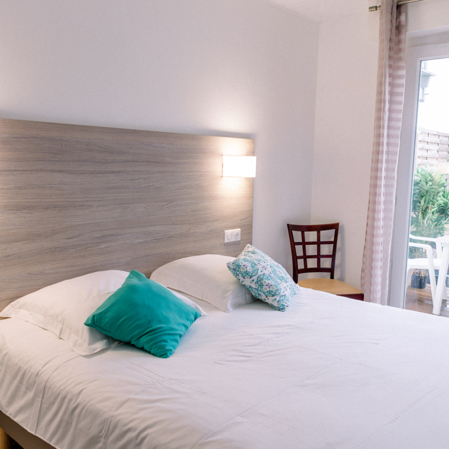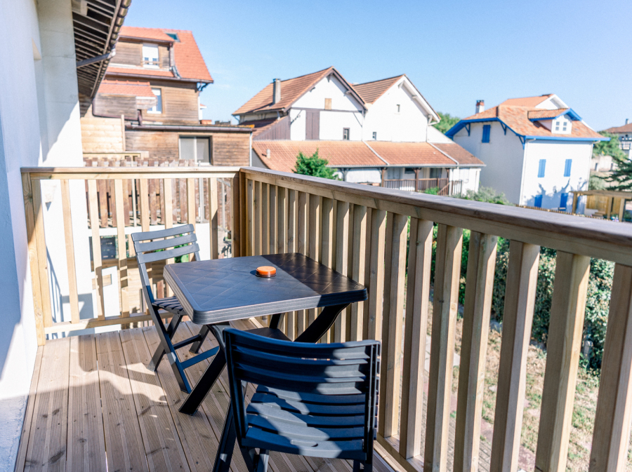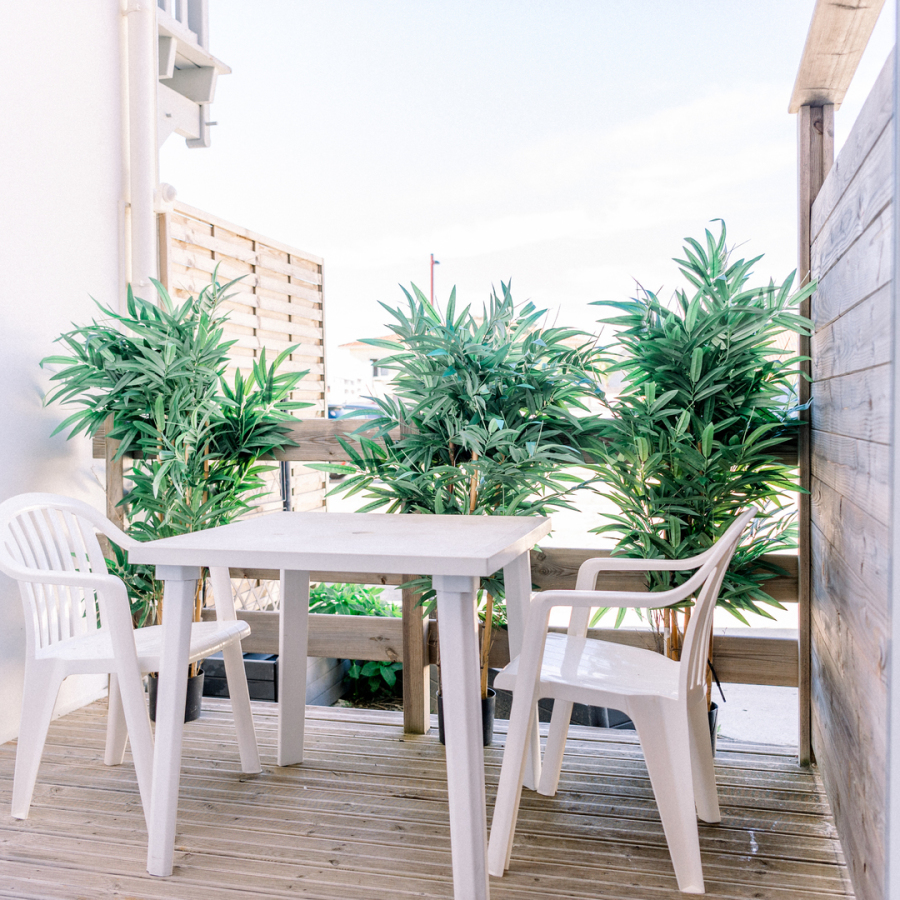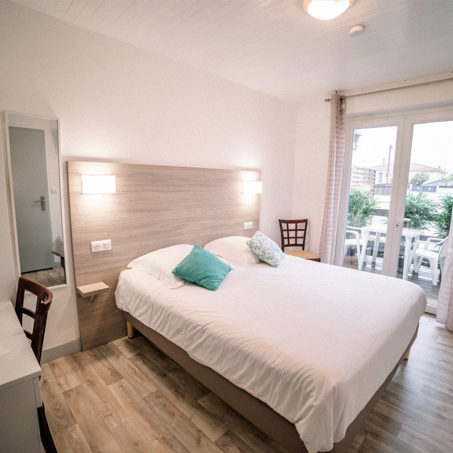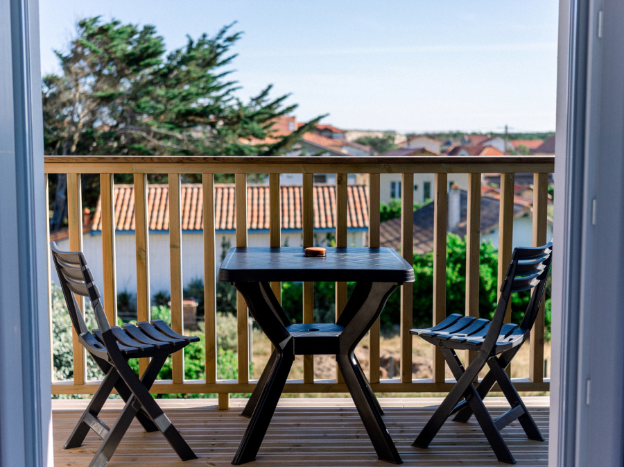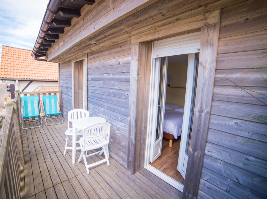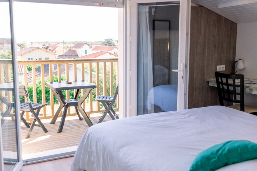 Les chambres avec balcon vous offrirons pour certaines, une vue sur la forêt de pins ou sur les toits de Mimizan